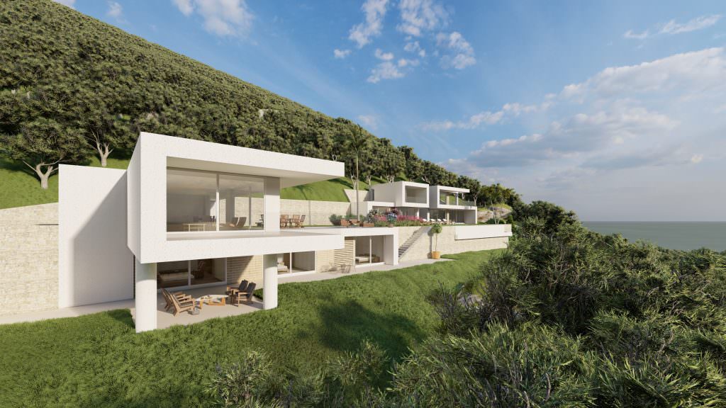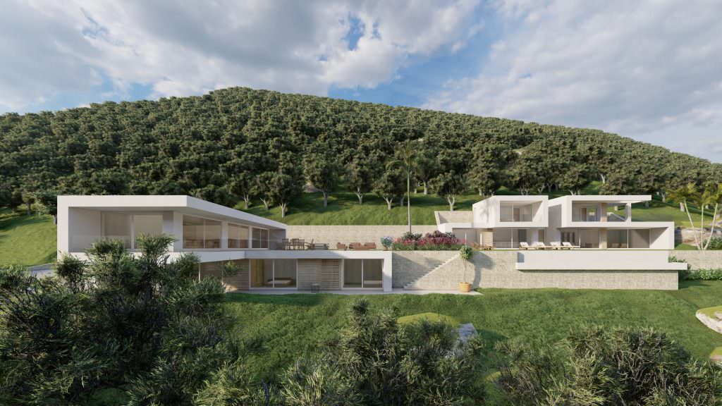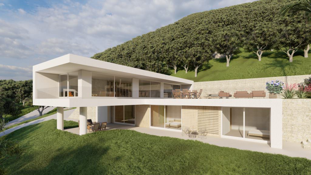 In the Agni area of ​​North Corfu, two two-story houses and a swimming pool are to be built on two neighboring plots with amazing views. The modern architecture, the simple lines and the large openings that offer views to all the rooms of the residences, are some of the main features of this project.