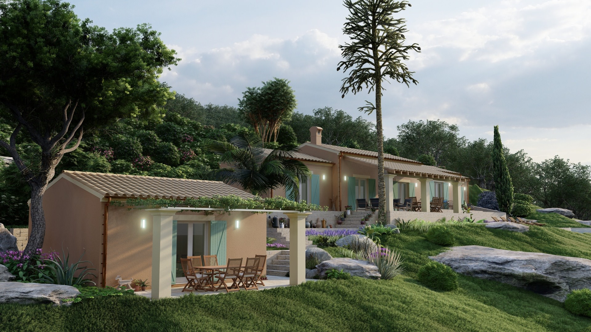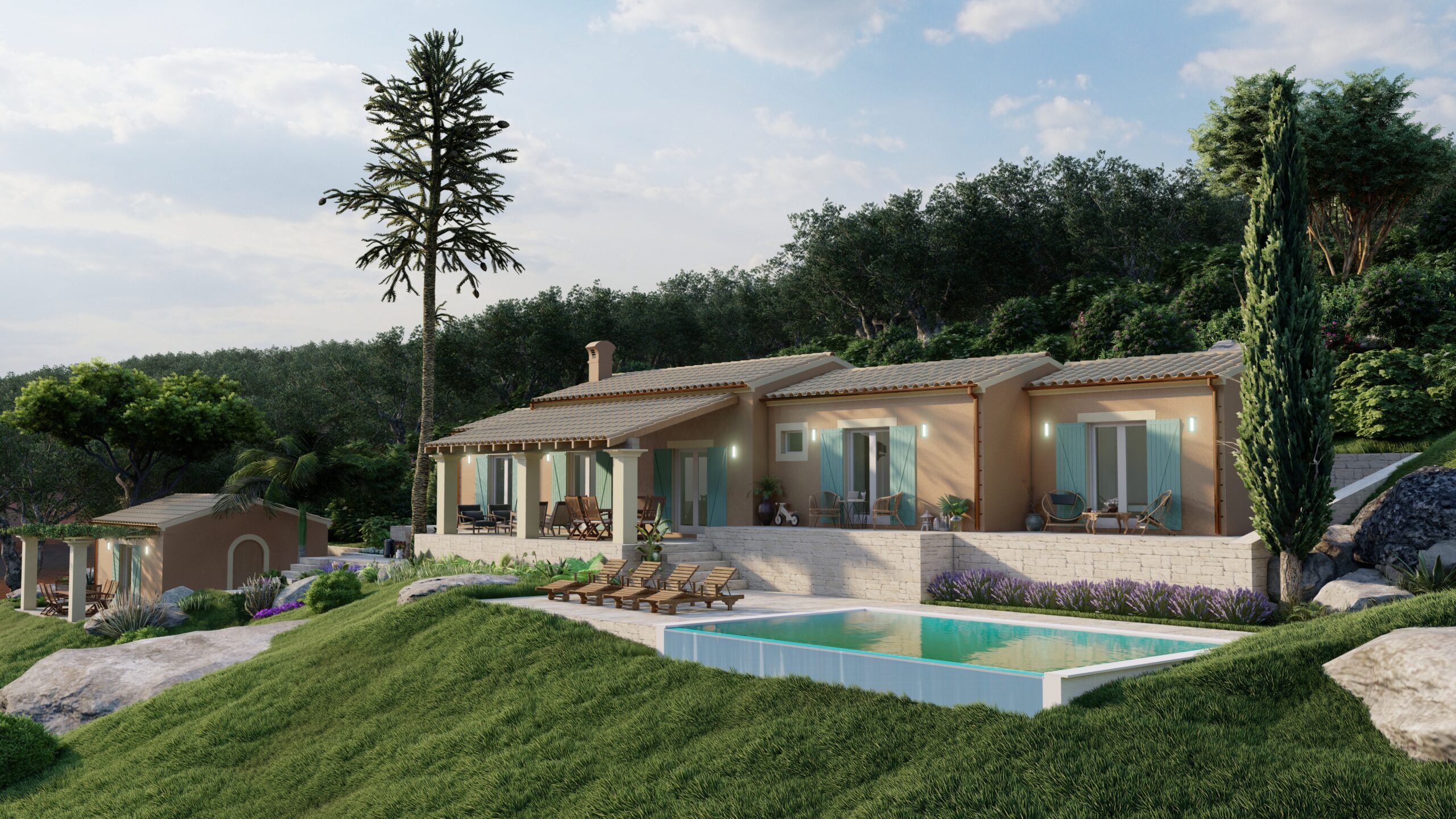 In the Porta area of ​​North East Corfu, two small ground floor houses with a swimming pool are to be built on a plots with breathtaking views.